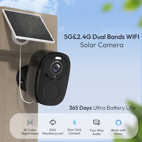 5G/2.4G Solar Security Cameras Wireless Outdoor, 2K Battery Camera w/Solar Panel,Siren Alarm,Color Night Vision, 2-Way Talk,Waterproof, Works/Alexa,No Monthly Fee,Wifi Camera for Outdoor Surveillance