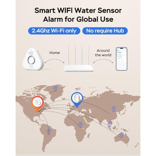 Water Detector Sensor,Water Leak Detectors for Home with App Alerts,Water Alarm Leak Detector with 120db Adjustable,500ft Transmission for Basement,Bathroom, Laundry,No Hub Required (Support 2.4G)