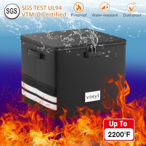 Large Vinyl Record Storage Box with Lock, Fireproof Waterproof Resistant Organizer for 150+ 12 inch Records, Collapsible Storage Box with Handles for Album Collection - Black