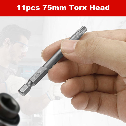 11PCS 75mm S2 Steel Torx Head Screwdriver Security Torx Bit Drill Set 1/4 Inch Hex Shank T6 T7 T8 T9 T10 T15 T20 T25 T27 T30 T40 3 Inch Length