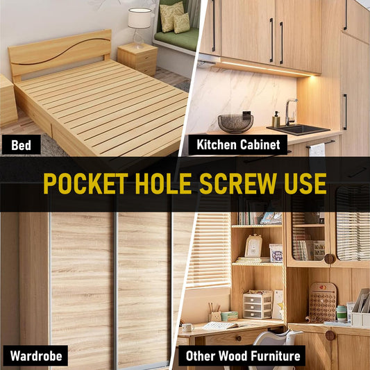 600Pcs #8 x 1 Inch Pocket Hole Screws, Interior Pocket Screw, Zinc Coated, Coarse Thread, Square Drive Washer Head, 150MM Drive Bit Included.