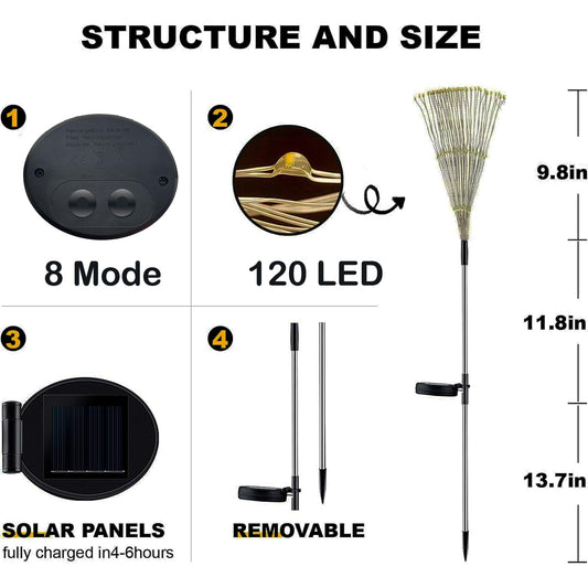 2 Pack Solar Garden Lights 240 LED - Waterproof Firework Starburst Outdoor Lights with 8 Mode, Solar Powered Flower Firework Light for Garden, Pathway, Patio, Yard, Flowerbed Decor Colorful