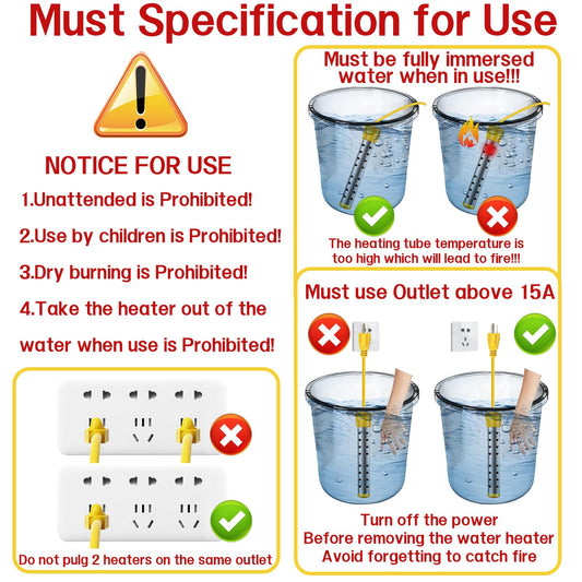 immersion Water Heater with Intelligent Temperature Control, Stainless Steel Mini Pool & Bucket Heater - Heats 5 Gallons in Minutes, Ideal for Home, Camping, and Outdoor Use