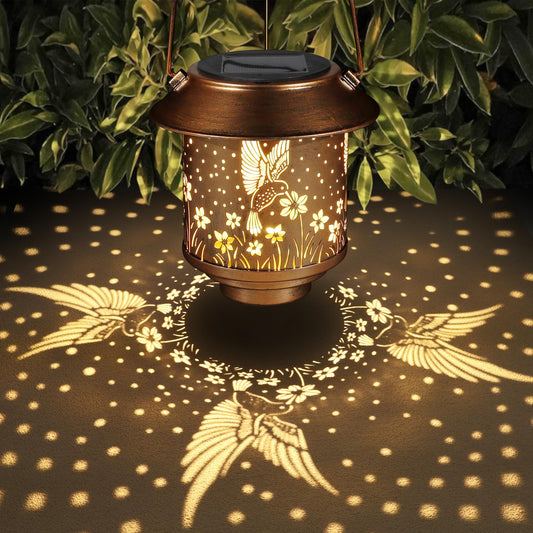 Solar Lantern Waterproof Metal Hummingbird Decor Birthday Gifts for Women Mom Grandma,Outdoor Hanging LED Decorative Light for Garden Patio Yard Lawn Backyard Front Porch