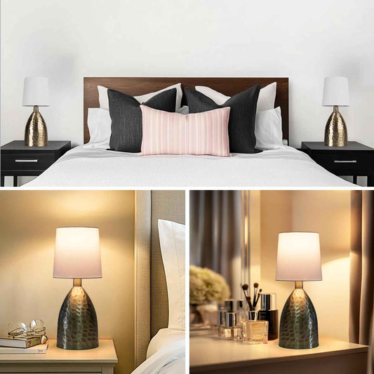 Touch Lamps for Nightstand, Gold Bedside Lamp Touch Control for Bedroom with Linen Shade, Mid Century Modern 13 inch Small Table Lamp for Living Room with E26 Bulb Included (Bronze 13" - 2 Pack)