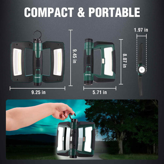 WORKPRO Rechargeable USB-C LED Work Light, Foldable Magnetic Light with Hanging Hook, 270° Rotatable, Tripod Mountable, Cordless Flashlight Light for Garage, Workshop, Auto Repair, Camping
