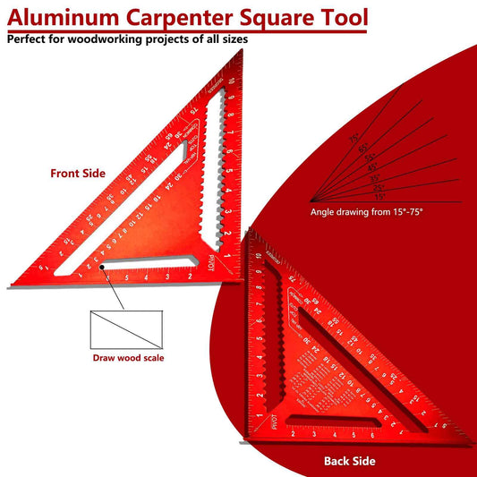 Carpenter Square 12 Inch, Aluminum Rafter Square Carpenter for Woodworking, Sturdy Angle Drawing Measuring Ruler, Layout Tool Alloy Triangle Ruler Protractor for Carpentry, Red
