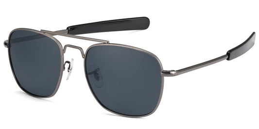 IOHLNG Mens Aviator Sunglasses Polarized Lense Square Metal Frame Military Pilot Shades 55mm with Bayonet Temples for Women,Gunmetal Frame