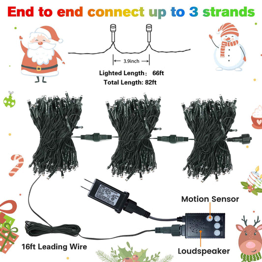 Toodour 82FT 200 LED Christmas Lights Outdoor, Indoor String Lights With Music, Motion Sensor Multicolor Tree Light - Holiday Decorative for Yard Bedroom Home Party Xmas Decor