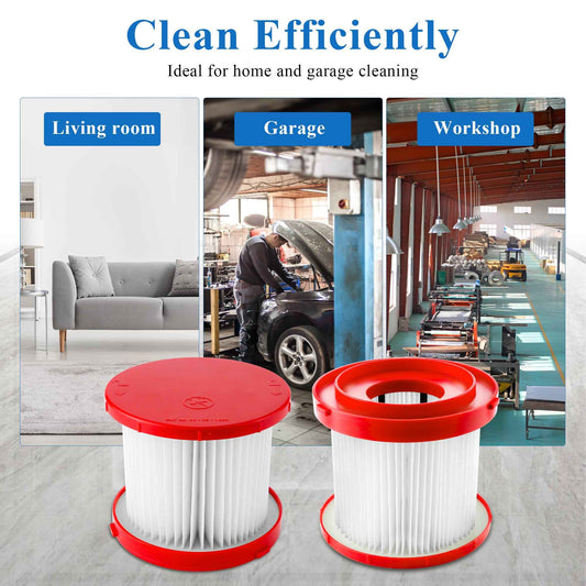 49-90-1900 Filter fit for Milwaukee shop vac M12 M18 M28 Vacuum Filter fit for Milwaukee 2 Gal Wet Dry Vac Cordless 0960-20 0880-20 0960-21 0970-20 2 Pack LUXRILIX