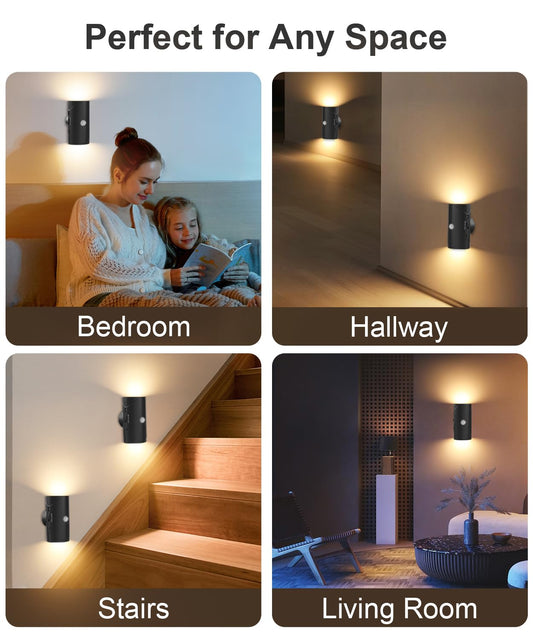 MuliVid 2 Pack LED Night Light,Rechargeable Battery Night Light,Magnetic Stick On Motion Sensor Light 3 Brightness Adjustment Modes for Bedroom, Stairway,Hallway,Bathroom(Black)