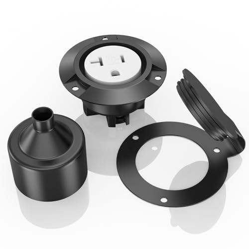 15A / 20A Flanged Outlet NEMA 5-20 Female Electrical Receptacle with Cover for Shore Power RVs Truck Bed Block Heater Indoor Outdoor Use ETL Listed