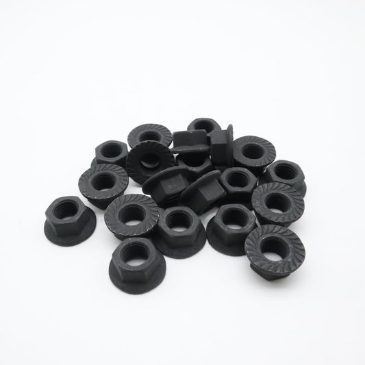 QYIMLI 20Pcs M10 x 1.25mm Flange Nut, Carbon Steel Thread Hardware Nuts Serrated Flange Lock Nuts Metric Hex Flange Nuts Bright Finish (Black)