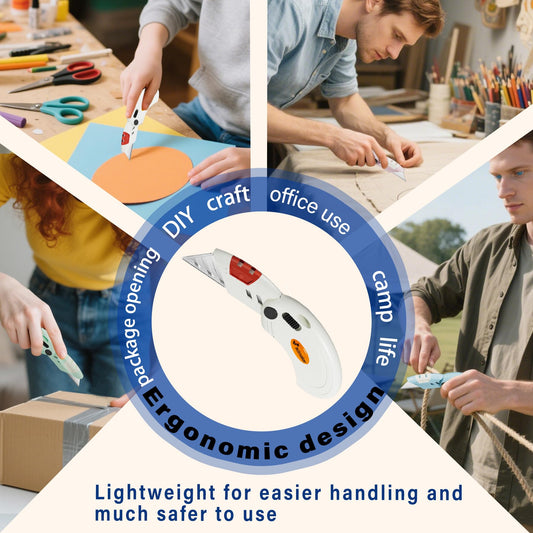 Scimaker 4-Pack Folding Box Cutters Lightweight Utility Knives Set Perfect for Office and Home Use, Back-lock Mechanism with Extra 10-Piece Blades