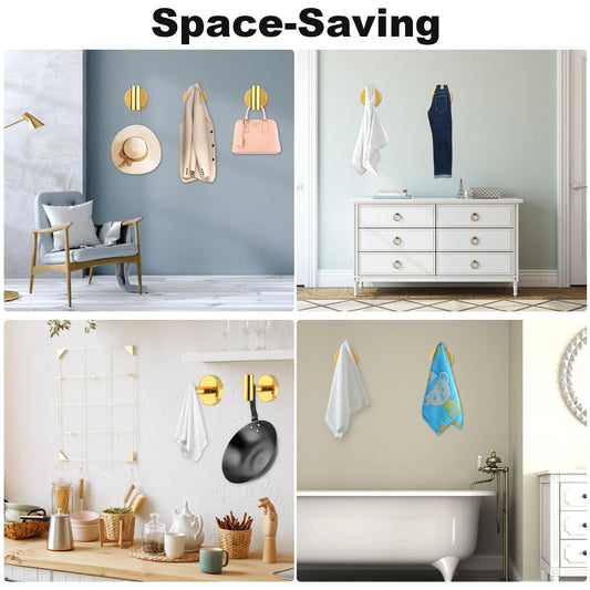 Bathroom Robe Towel Hooks Wall Hook Holder Heavy Duty Door Hanger Towel Robe Clothes Cabinet Closet Sponges Hook for Bathroom Bedroom Kitchen Hotel Pool 4 Packs(Bright Gold)