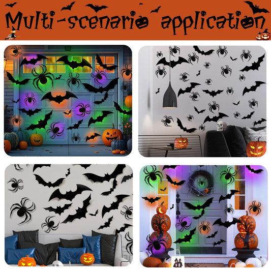 36 Pcs Halloween Wall Decor 3D Led Bats Spiders Wall Stickers Removable Light Up Spiders Bats Decals for Indoor Outdoor Window Door Halloween Party Decorations