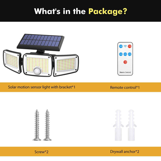 Orbecco Solar Outdoor Lights, 3 Color Temperature Solar Motion Sensor Outdoor Lights with 3000LM 288LED, 3 Heads Solar Wall Lights with IP65 Waterproof, 270° Wide Angle, Garage, Pool, Garden