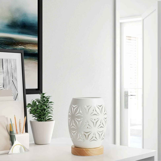 OuXean Bedside Table Lamp, Small Night Light Metal Lampshade and Wood Base, E12 40W Desk Lamp for Bedroom Living Room Home Decor Office Restaurant Bar, White, Without Bulb