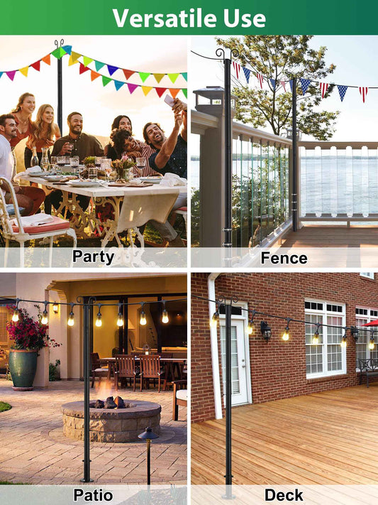 String Light Poles, 12.6 FT Light Poles for Outside Patio, Outdoor Deck Lighting Poles with Brackets for Fence and Base for Wood Concrete Mount, Heavy Duty Metal Stand Hanging Garden Party Decoration