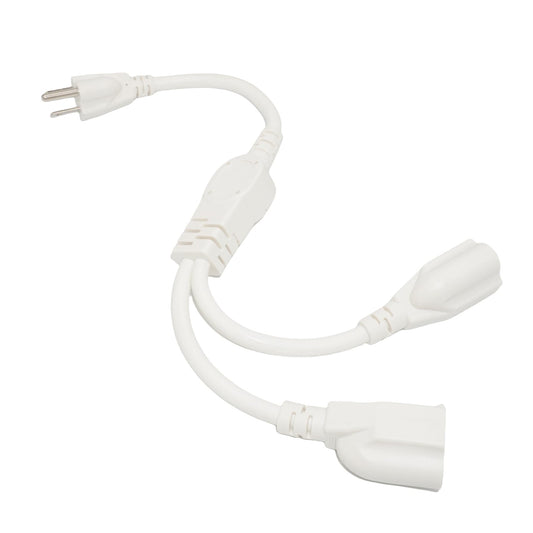 2 Way Power Splitter, 3 Prong 1 to 2 Extension Cord Splitter, 1.4' Short Extension Cord Indoor Cable Strip Outlet Saver, SJT 16AWG for Halloween Lights, Christmas Decorations, Computer, White, 1.4FT
