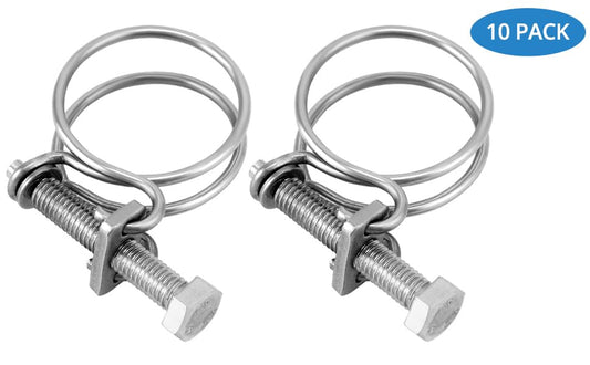 QWORK Heavy-Duty 1-1/2 Inch Double Wire Hose Clamp with Bolt – 304 Stainless Steel 10 Pack, Leak-Proof and Corrosion-Resistant for Secure Hose Connection