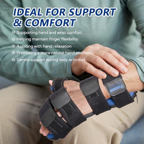 Resting Hand Splint with Finger Support for Stroke Recovery, Carpal Tunnel & Dupuytren's Contracture - Adjustable Wrist Brace for Left or Right Hand, M