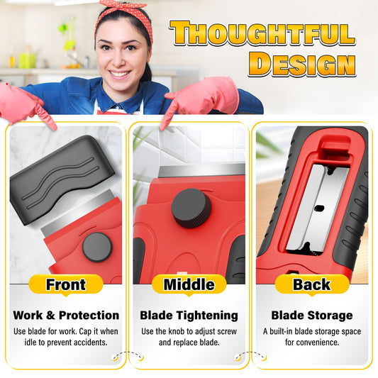 DIYSELF 2 Pack Razor Blade Scraper with 30 Pcs Blades - Scraper Tool - Scraper for Cleaning Stove, Oven, Glass, Kitchen - Paint Scraper - Razor Scraper - Glass Scraper - Glass Stove Top Scraper
