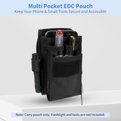 KENOBE Belt EDC Pouch, 5-Pocket Multi-Purpose Tool Holder, Multitool Holster Tactical Pouch Cell Phone Organizer for Work, Hiking, Camping, Barbecue, Rescue