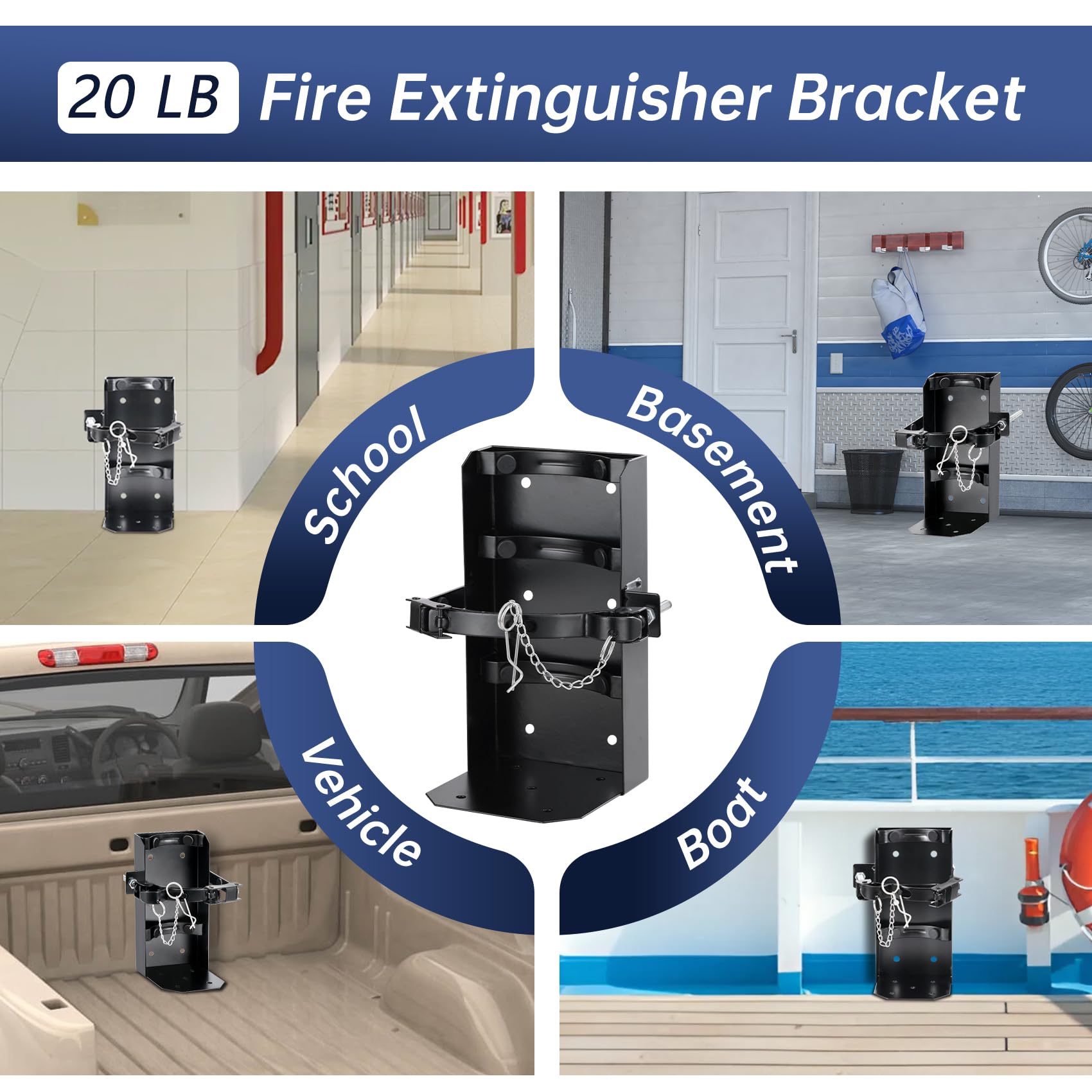 - 【Wide compatibility】The size of the extinguisher mounting bracket is 7*7*13.5 ", suitable for 20 lb dry fire extinguishers and 10 lb CO2 fire extinguishers. It can be used in schools, hospitals, ships, trucks, underground warehouses, etc., improving safety factors. (Installation hole diameter 3/8”)