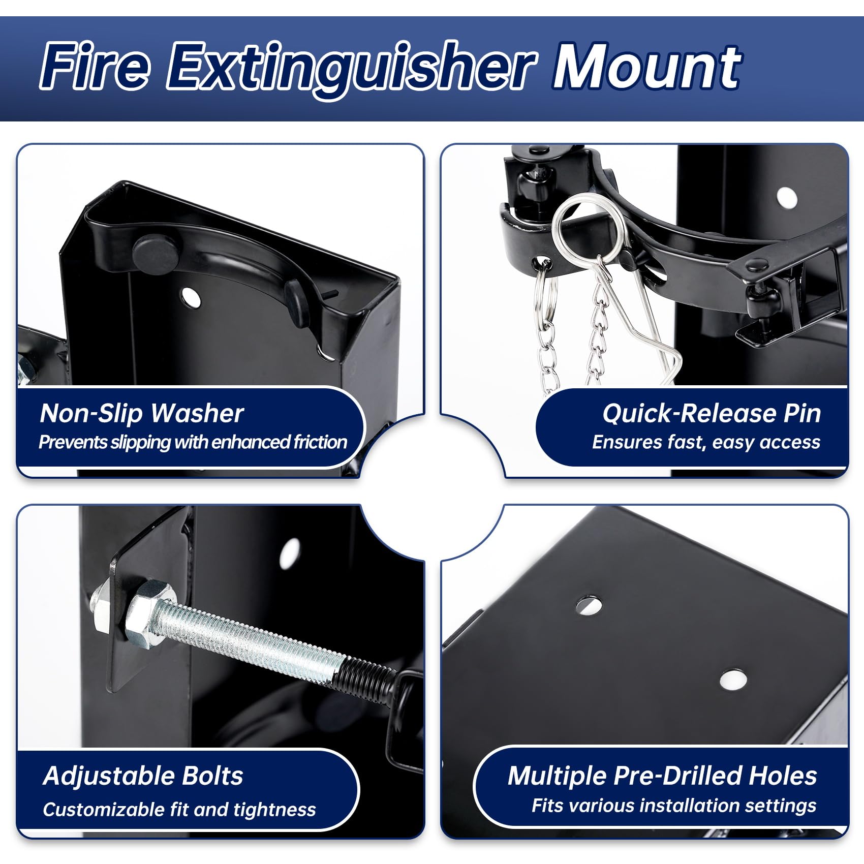 - 【Perfect After-Sale Service】When you buy the fire extinguisher mount from us, you're not just getting a fire extinguisher mount . You're getting our full-on after-sales service. Trust us, and we'll give you a satisfying experience. If you're not happy for any reason, we will solve the problem within 12 hours