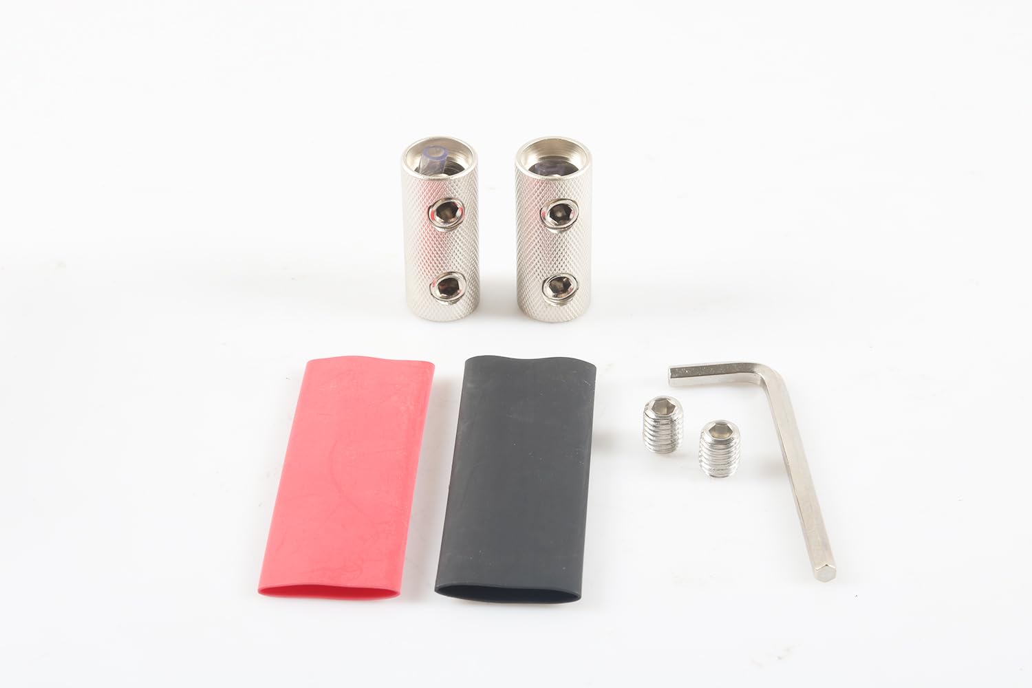 - Package include:2X 0 Gauge wire butt terminals,1X Red dual wall adhesive heat shrink tubing,1X Red dual wall adhesive heat shrink tubing,2X Extra screws,1X Wrench