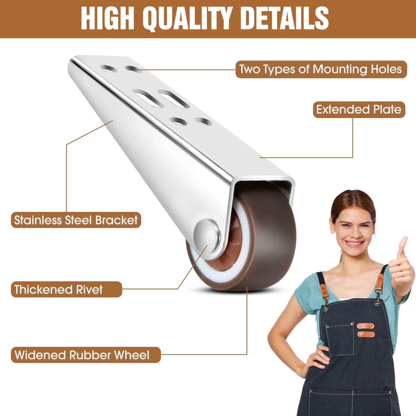 - UPGRADED ELONGATED STABILITY DESIGN: The Newly Upgraded Elongated Galvanized Bracket Design Extends From Two Holes To Four Holes, With Better Fit Tightness And Bearing Capacity, As Well As Good Rust Resistance And Stronger Stability. Whether You Have A Table, Chair, Or Other Furniture, You'Ll Love The Easy Control And Quiet Features Of These Casters.
