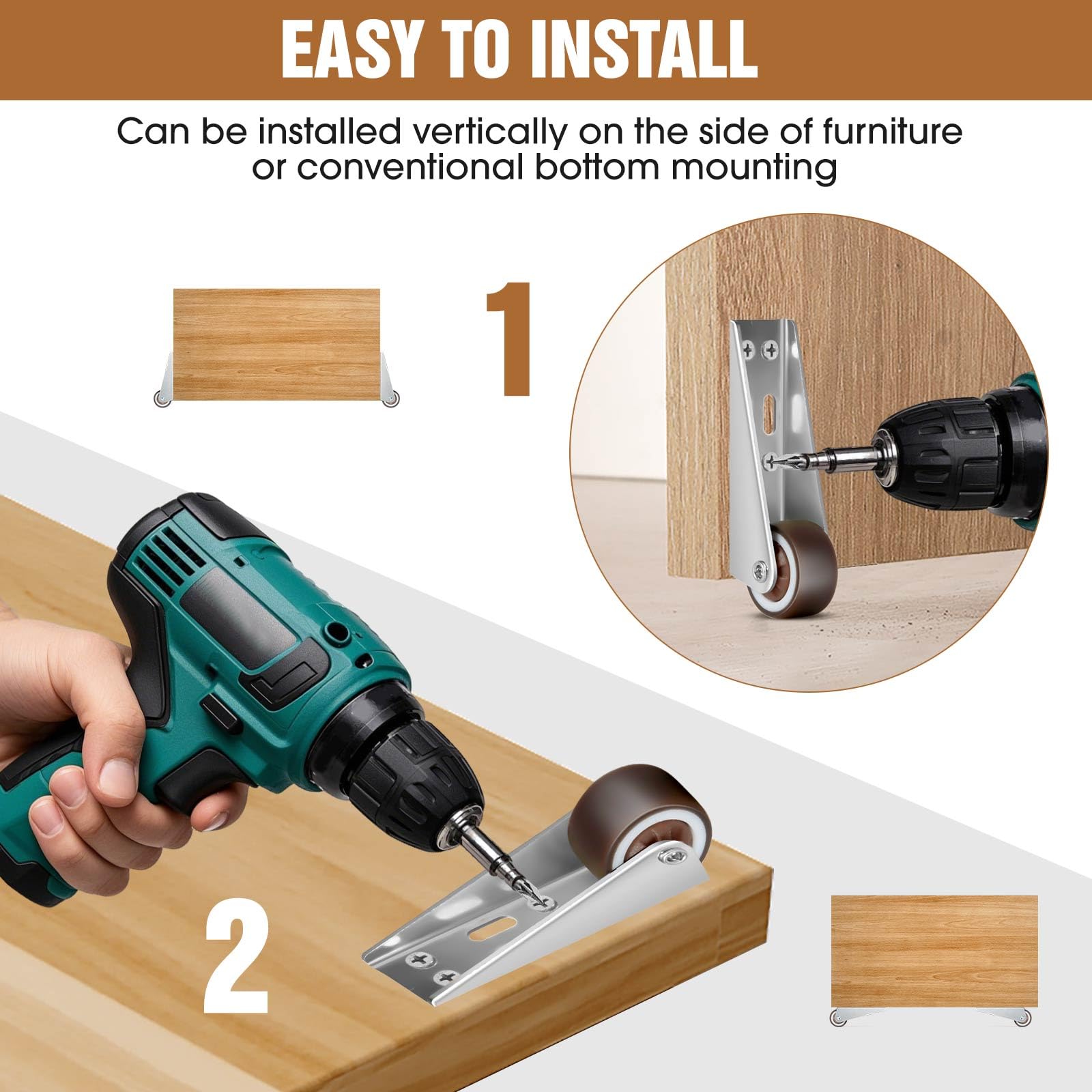 - CONCEALABLE DESIGN: The Mini Rolling Casters Can Be Well Hidden In The Bottom Of Your Furniture, And The Furniture Only Needs To Be Raised 1.0 Inch After Installation To Maximize Space Saving.