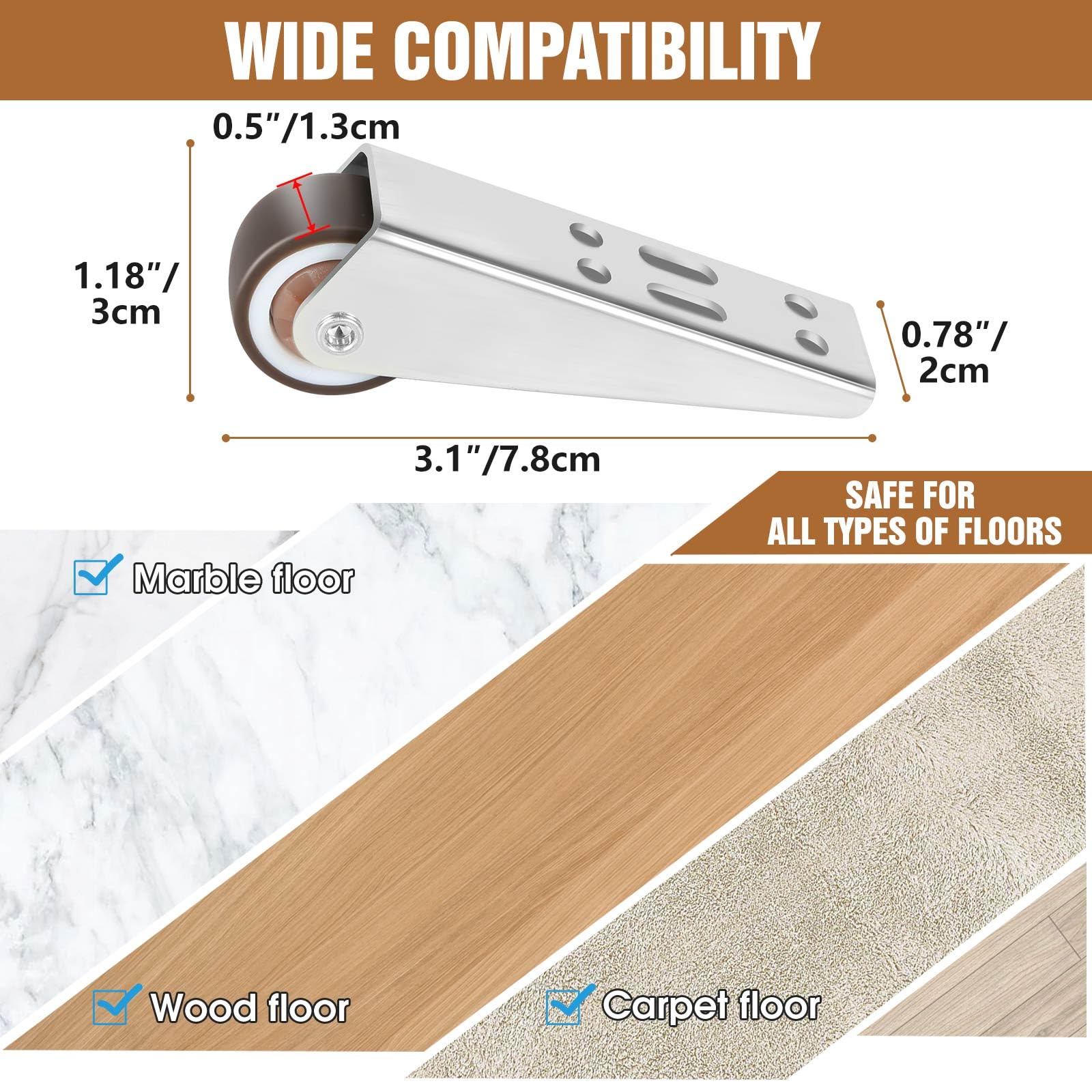 - QUALITY RUBBER WHEELS - QUIET AND SMOOTH: Small Rolling Wheels For Furniture Movement Are Made Of Non-Damaging Thermoplastic Rubber (Tpr). This Soft Material Protects Your Floors Without Leaving Marks Or Scratches And Reduces Vibration To Provide A Smooth, Non-Disturbing Sliding Noise On All Types Of Hard Floors With An Outstandingly Quiet Sliding Experience.