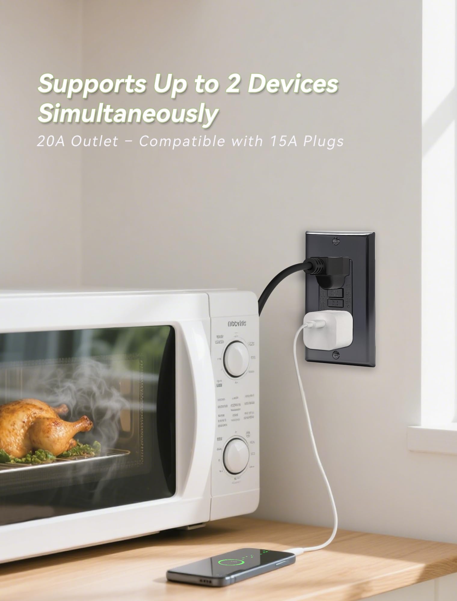 - Premium Materials for Long-Lasting Reliability.Built with 0.81mm Thick Copper and 0.4mm Silver-Plated Contacts, this outlet ensures efficient current transmission and reduced heat buildup. Its robust construction minimizes plug failure and enhances durability, making it a safer and more reliable choice for everyday use.