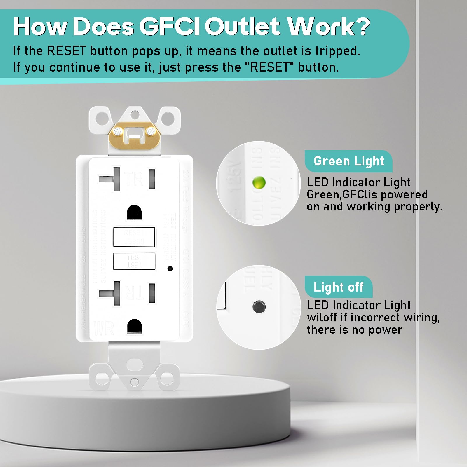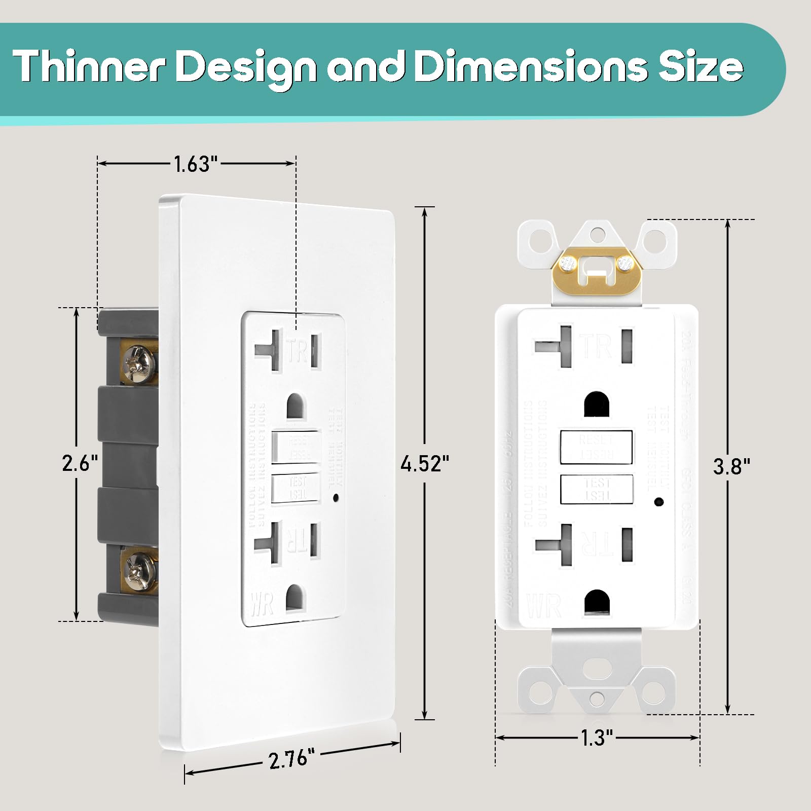 - 【Tamper Resistant】Tamper resistant receptacle adopt to spring-loaded shutters design that close off the socket openin. Make sure GFCl works properly in the environment with several electrical equipment such as kitchen and washroom without interference