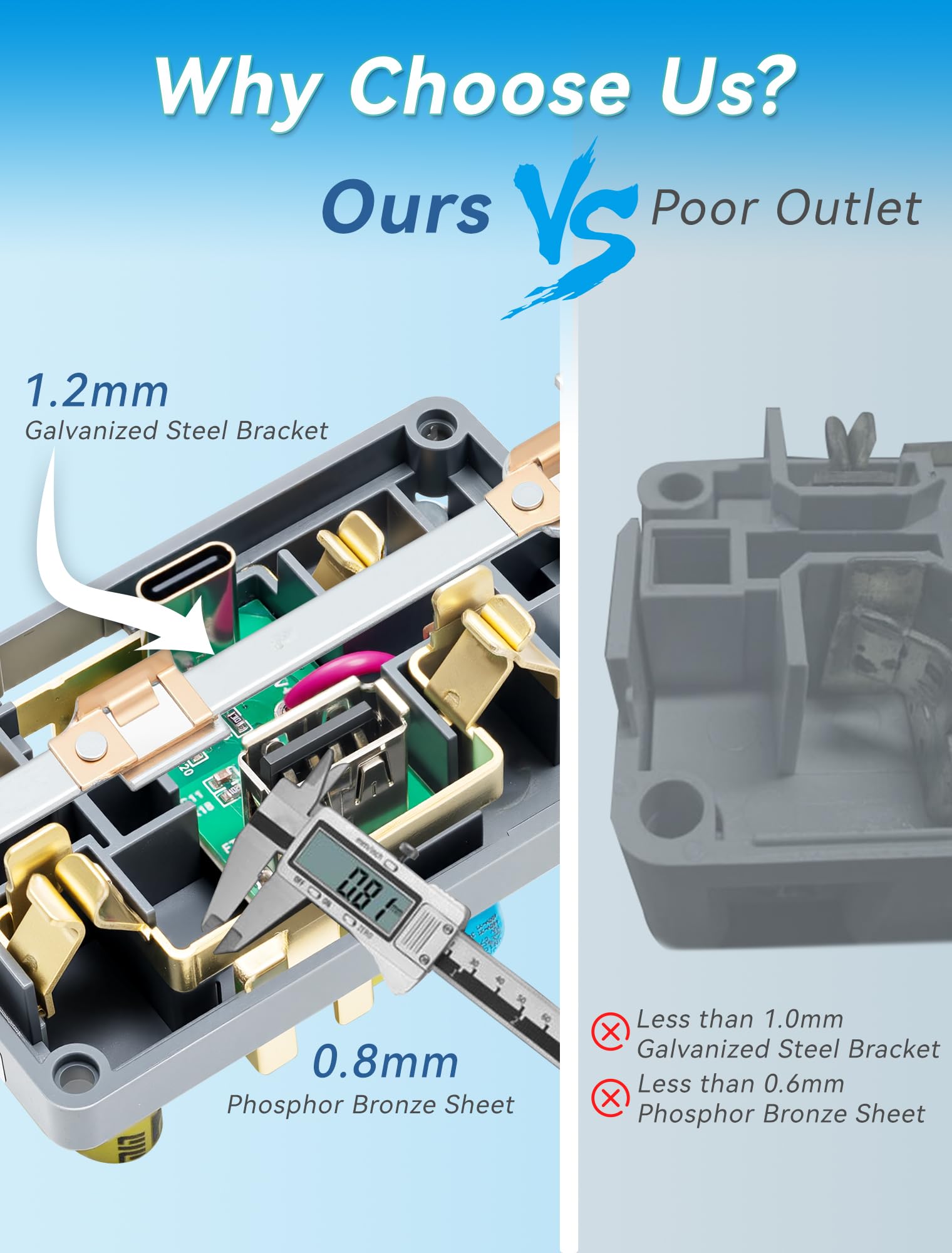 - Built-in smart chip optimizes charging by detecting devices; USB A port on this outlet delivers 2.4A (12W) for standard charging, while the USB C port offers faster charging at 3.0A (15W)—combined 3.6A (18W) output at 5V DC for versatile device support.