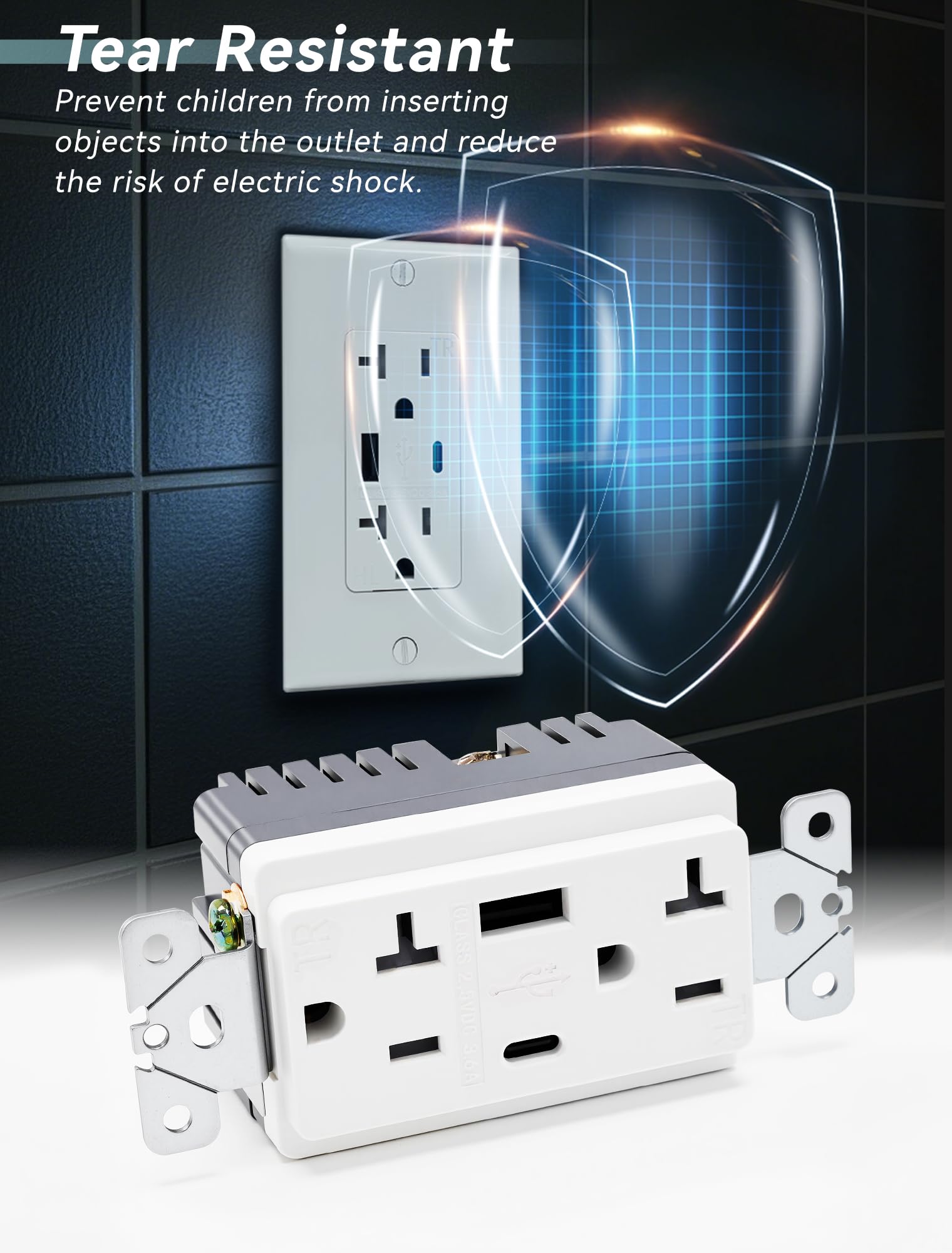 1 Pack USB Outlet 20 Amp TR Tamper Resistant Wall Receptacle with USB C and USB A Ports UL Listed CSA Certified Standard Wall Plate Included White