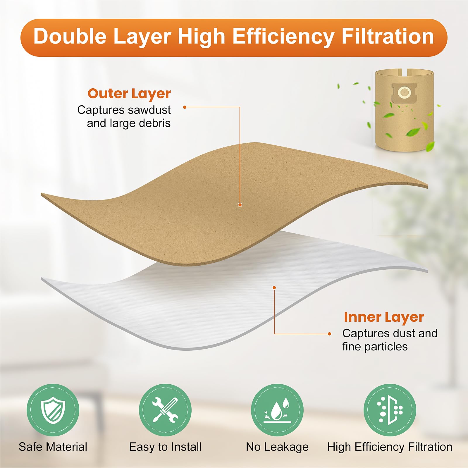 Details: 10 Pack DXVA19-4104 Vacuum Bags for DEWALT 5 to 8 Gallon Wet/Dry Vacuum, Disposable Workshop Large Capacity Replacement Dust Bag