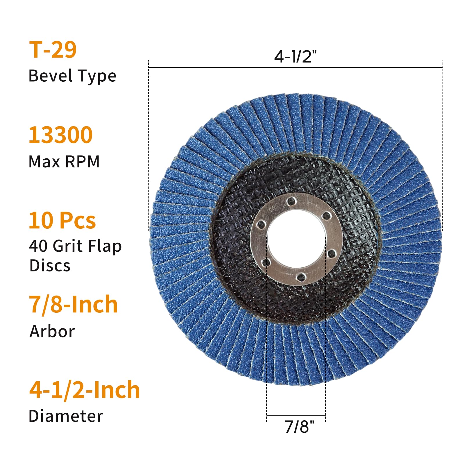 - Professional Grinder Flap Disc : Each sanding disc for angle grinder measures at 4-1/2-inch diameter with a 7/8-inch arbor size compatible with an angle grinder with a maximum 13, 300 RPM grinding speed