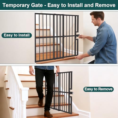- ¡¼All-Metal Baby Gate¡½Our quick-install baby gate features a full metal frame, which is sturdy and durable,don't need to worry about it being chewed or scratched by your pet and it is equipped with a metal lock, which is more durable than traditional wooden locks,don't need to worry about the lock breaking