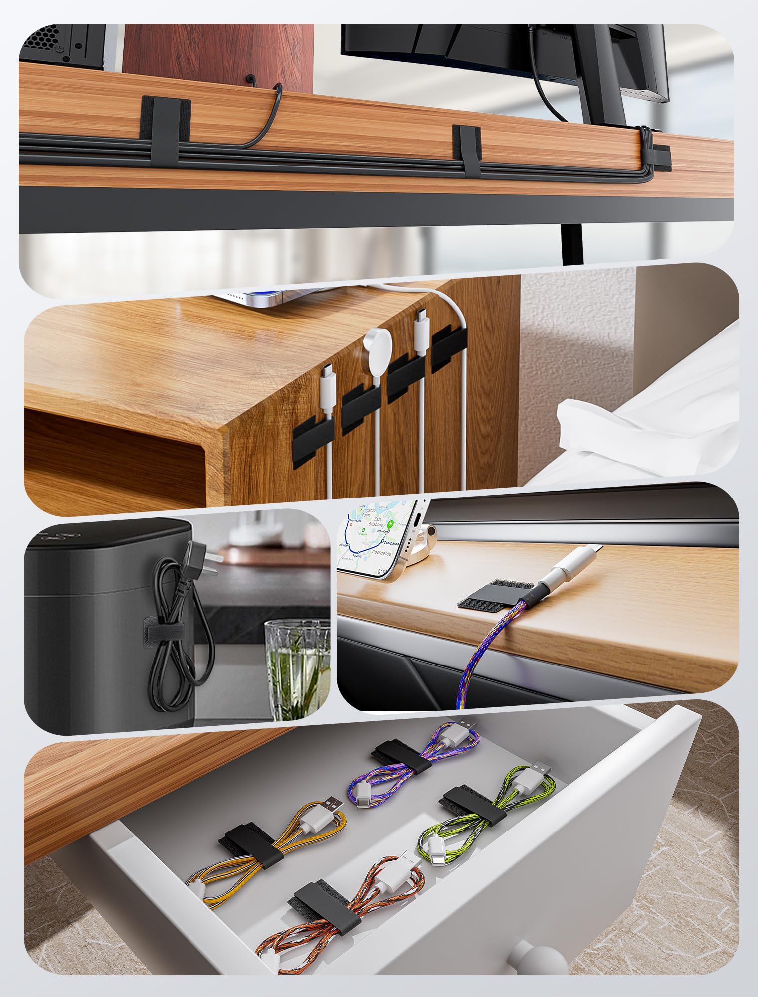 - 【Strong Back-Glue Adhesive】Featuring a strong adhesive that leaves no residue. Our adhesive cable ties bond securely to surfaces, keeping your cables tidy, whether under tables or beside electronics. For best results on walls, apply the product and wait 24 hours before attaching cables, as rough surfaces require time for the adhesive to bond. (When using it on walls, please think twice before applying, because the product may cause the wall paint to peel off due to its strong adhesive.)