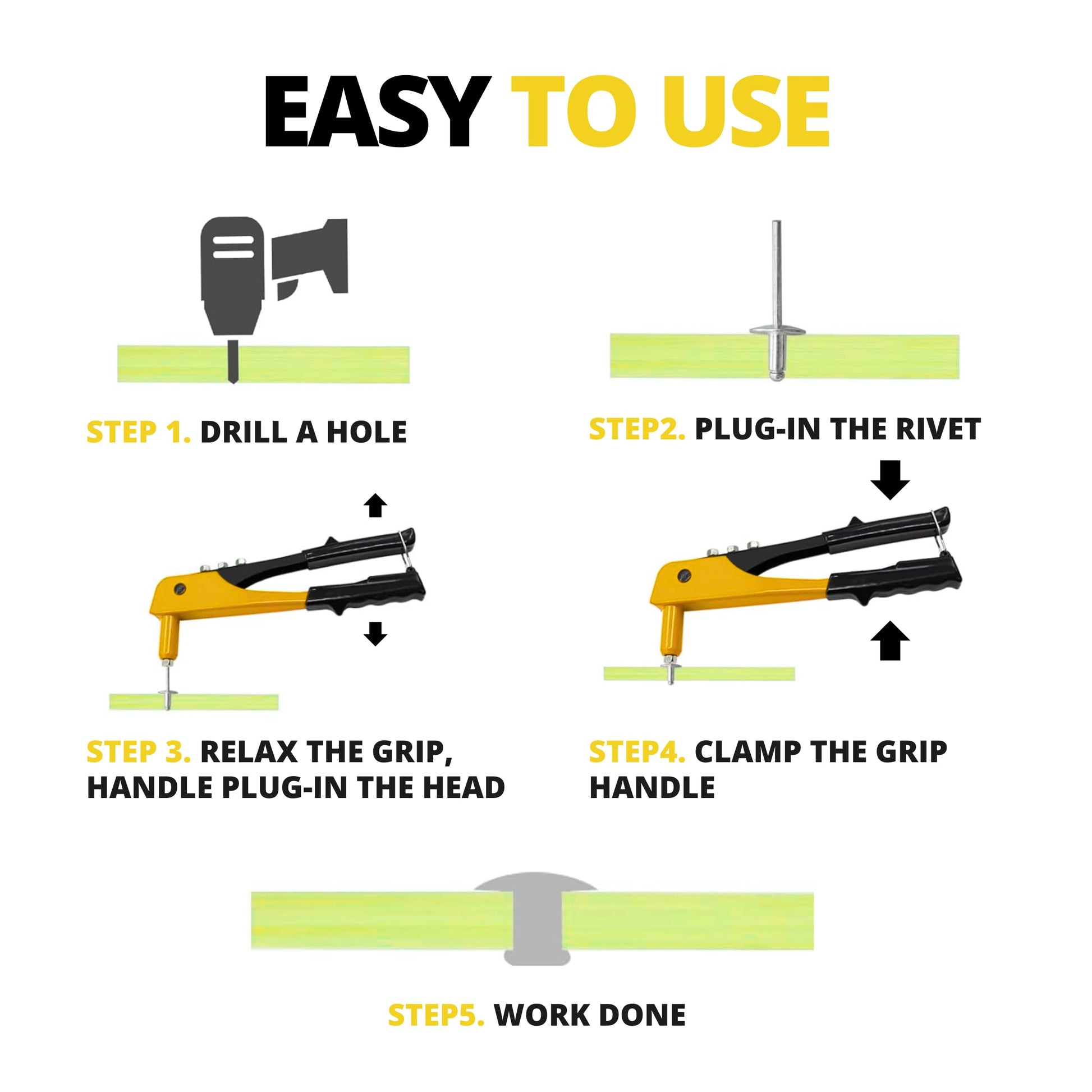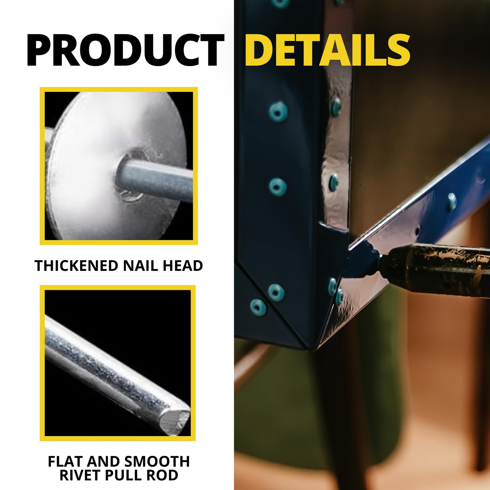 - A metal rivets set with 100 closed end blind rivets is included in the pop rivet kit. They are designed to be used with automatic riveting machines, rivet buckets, and blind rivet tools. These large rivets have an increased connection area with the board, ensuring a secure hold and a satisfying pop when tightened. The large head aluminum pop rivets provide excellent rust resistance, making them perfect for securely attaching various items together