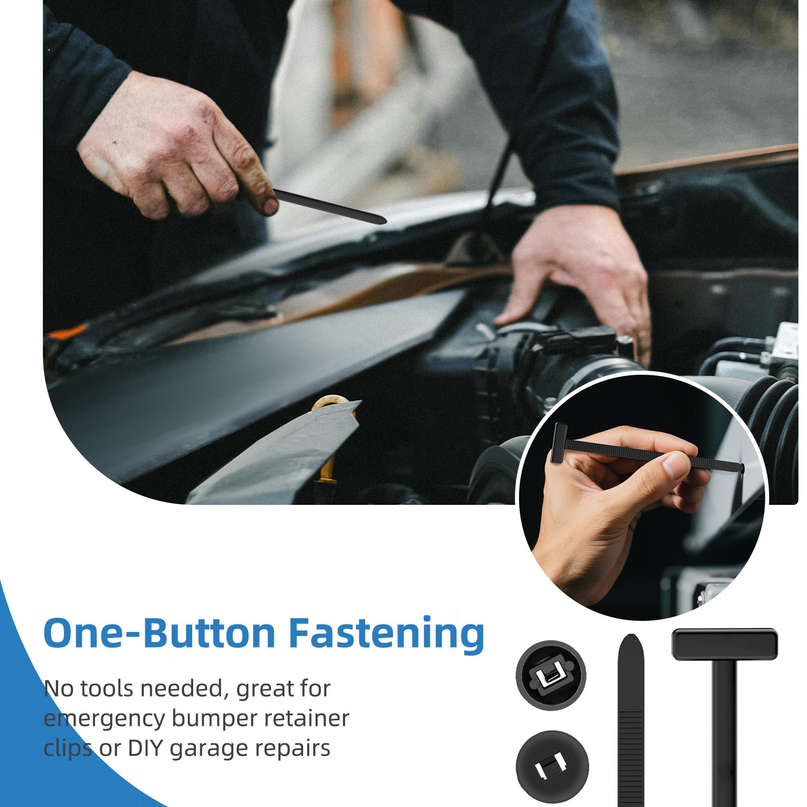 - 【Zip Tie Buckle Easy to Use】The nylon universal cable tie buckle for car is super convenient. You just pull it tight, slide the cap down firmly, then trim the excess. No tools needed, great for emergency bumper retainer clips or DIY garage repairs