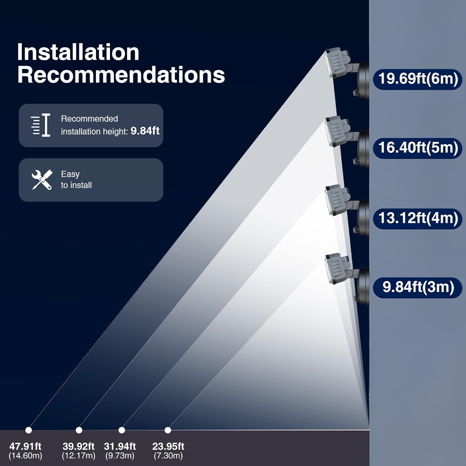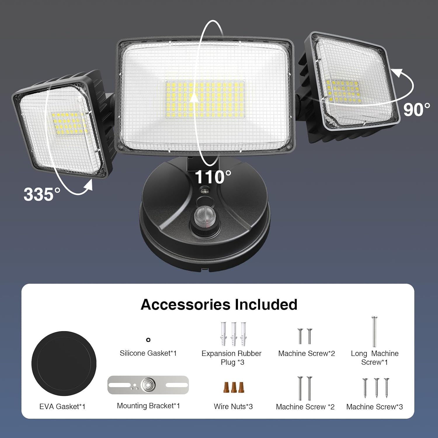 - 3 Adjustable Heads Design and Wider Lighting Range:3 Lamp heads can be adjusted easily to your desired angle which ensures you customize the illuminating area. With high-quality reflective film, custom beam angle easily up to 270°, can illuminate approximately 1150ft²,bringing extra safety lighting to every corner of your home
