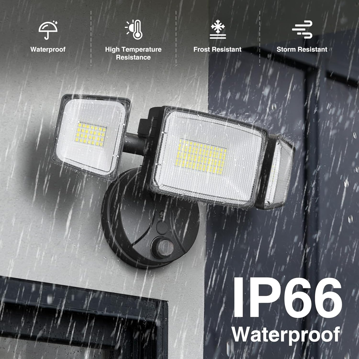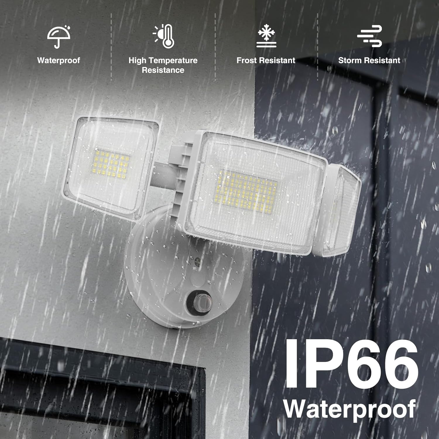 - IP66 Waterproof:The IP66 rating ensures reliable performance in all weather, including rain, sleet, and snow. Suitable for indoor and outdoor use in locations such as barns, gardens, squares, factories, docks, and stadiums
