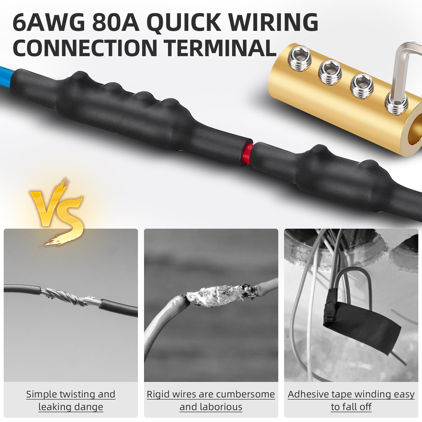- WIDE APPLICATION: Our 80A 6 awg wire connector are suitable for a wide range of applications including ships, marines, automobiles, household appliances, electrical and electronic industries, providing flexibility for various projects.