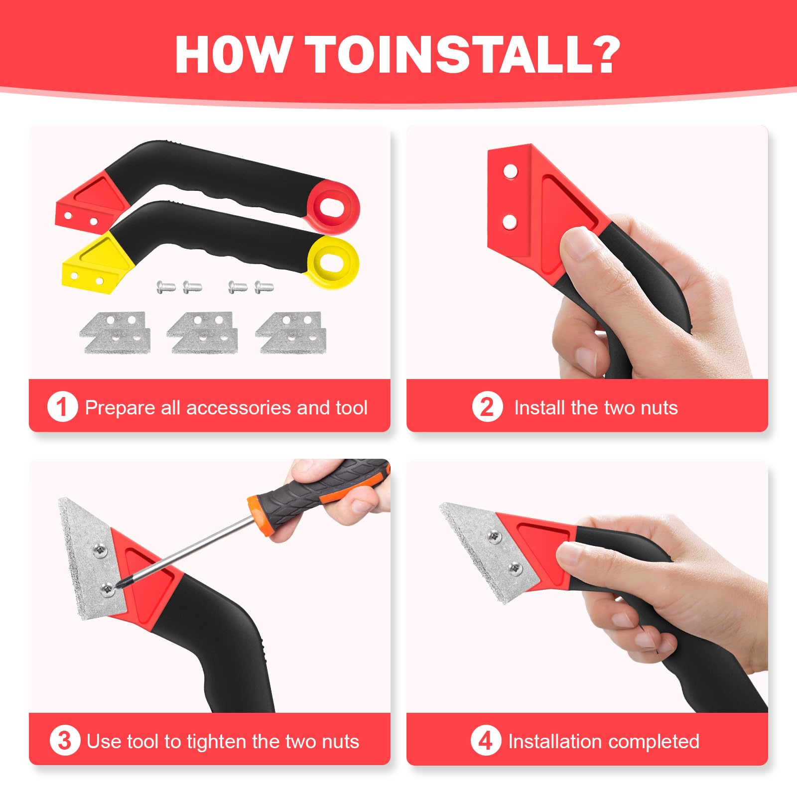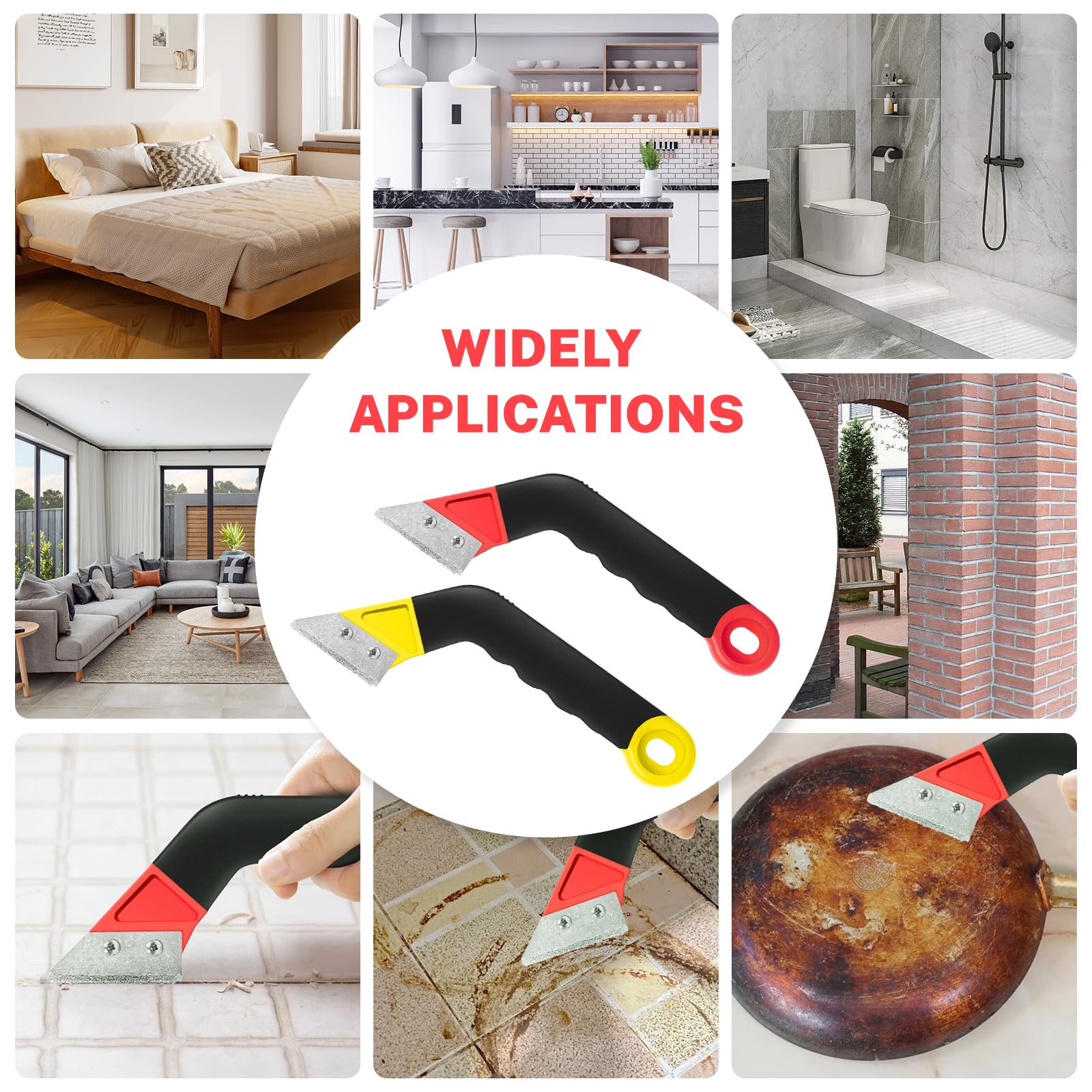 - 【Ergonomic Curved Handle Design】Our grout remover tool set includes two grout remover tools (yellow and red), both with ergonomic curved handles for a comfortable, non-slip grip, ensuring better control during use