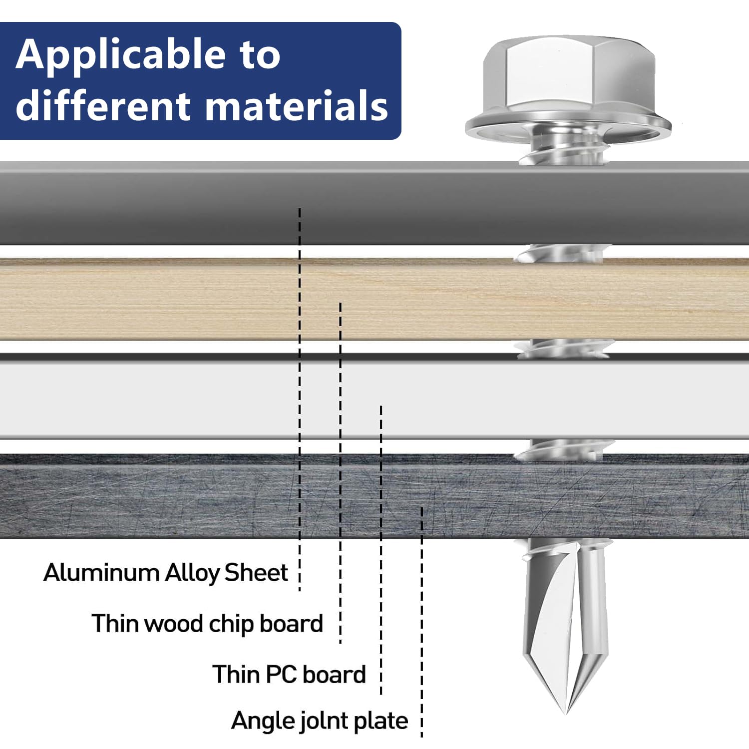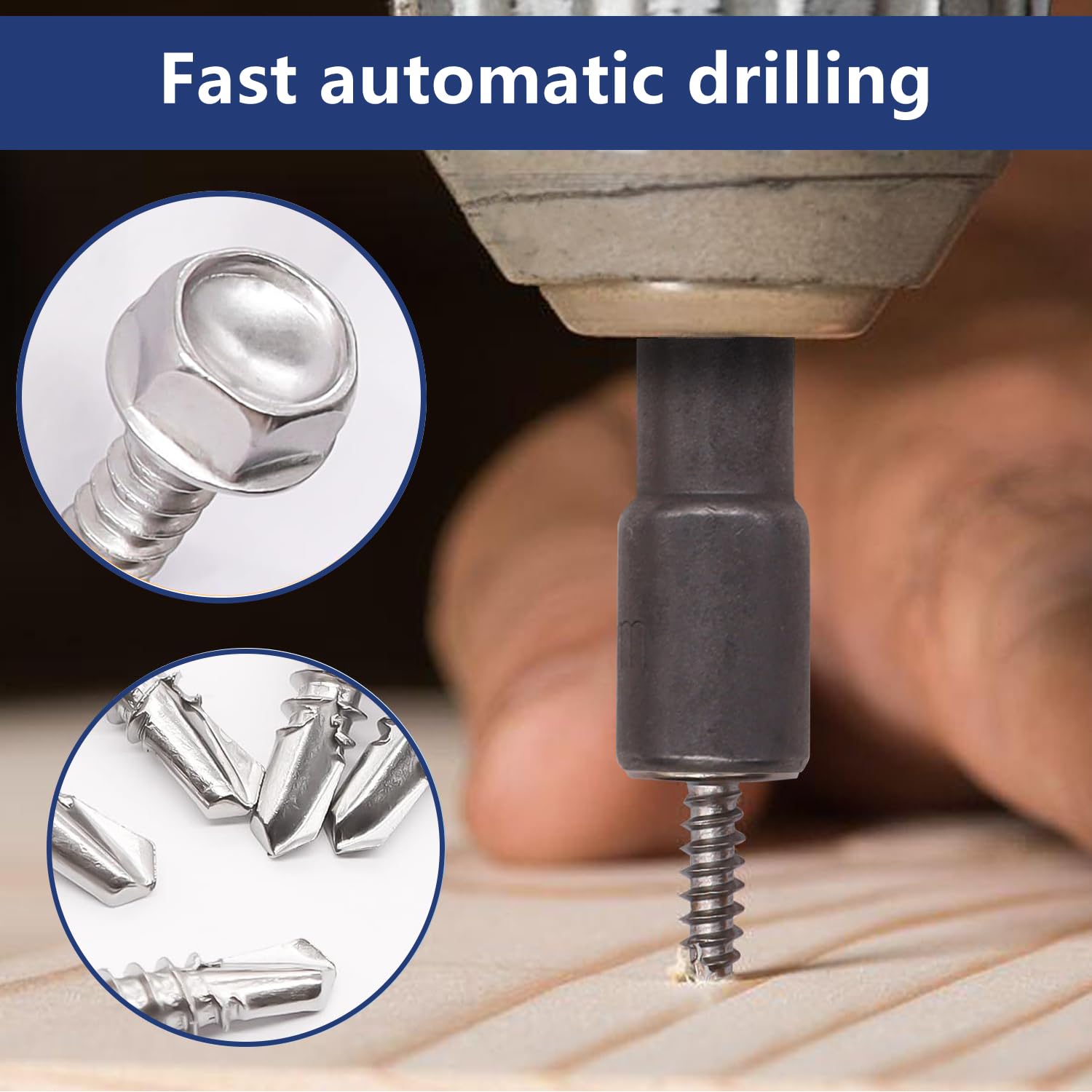- 【Self-Tapping & Self-Drilling】 Equipped with a sharp drill point tip, these screws can tap their own hole and drive into wood, fiberglass, or thin gauge metal without pre-drilling, saving time and effort.