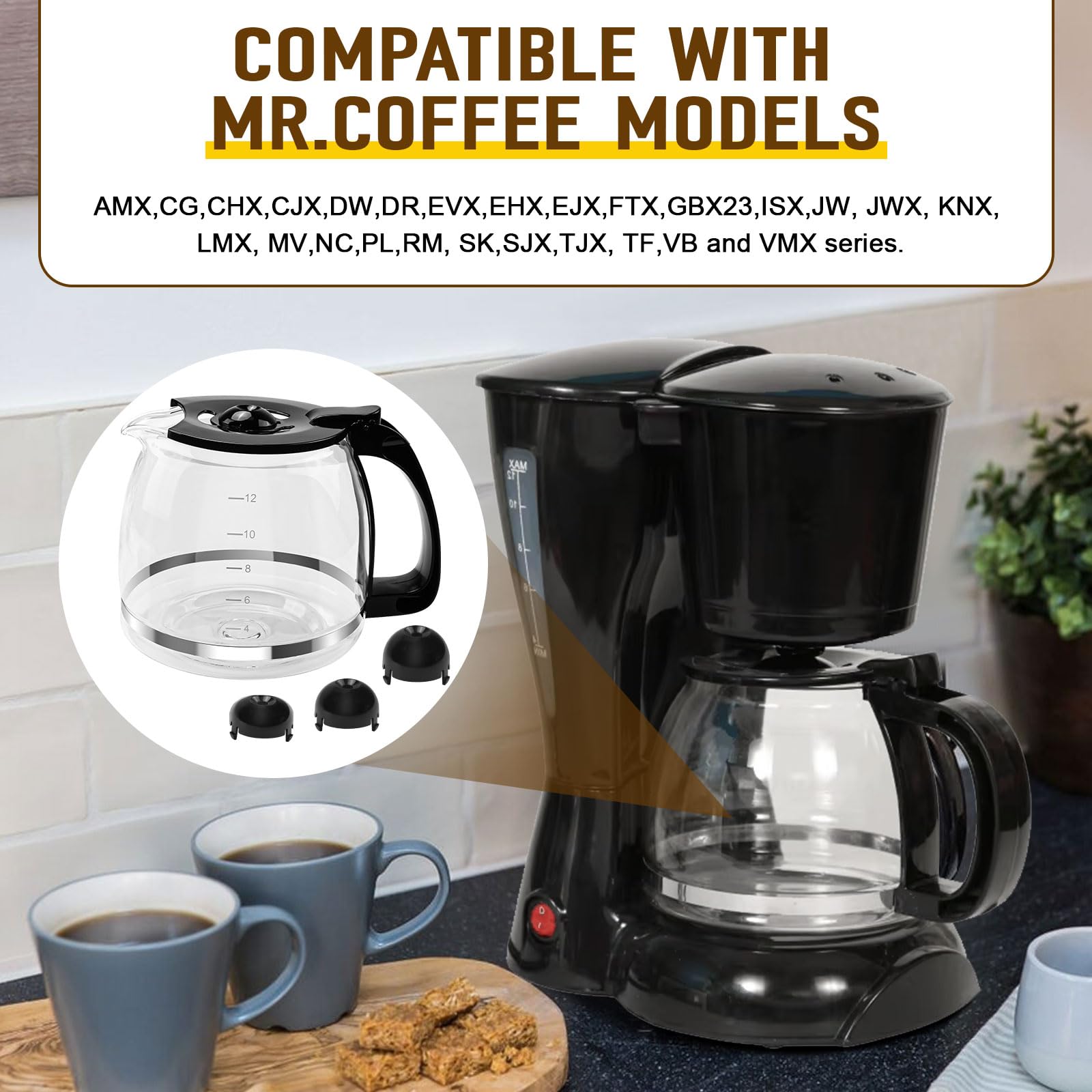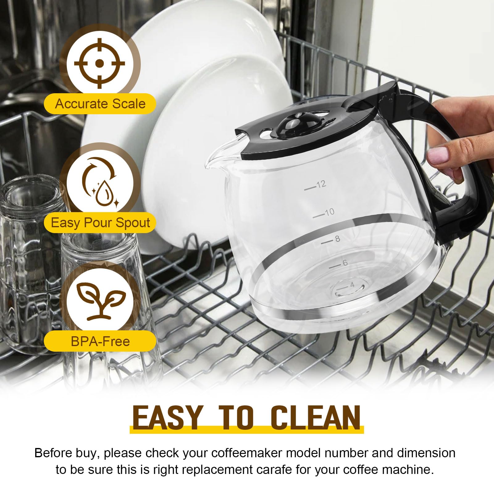- 【Glass Coffee Carafe High Quality】Our for mr coffee carafe replacement 12 cup glass coffee carafe is made from heat resistant Non-Porous borosilicate glass,BPA-Free.This 12-cup coffee pot is exclusively designed to replace a lost,Broken,old or worn-out one.